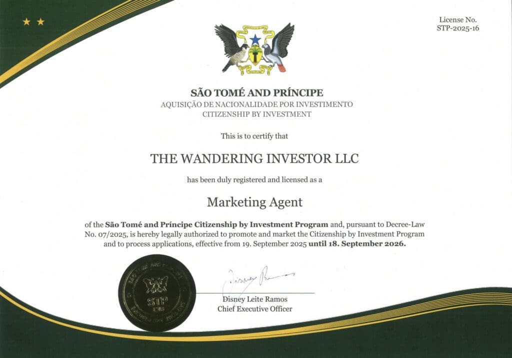 Suite à de longues discussions avec les responsables gouvernementaux et les administrateurs du programme, nous sommes désormais agents officiels du programme de Citoyenneté par Investissement de São Tomé-et-Principe.